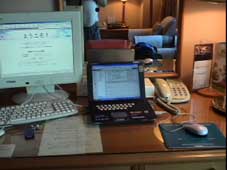 | このカッコウで商談会に臨む。 ホテル部屋でカメラに自分を映す。 |