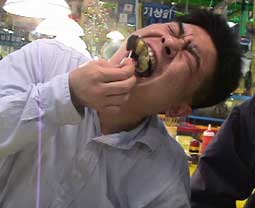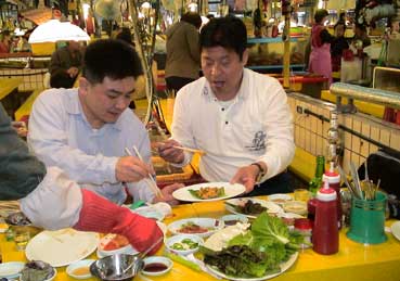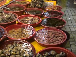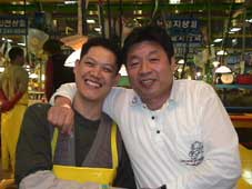 3人は、チャカルチ市場へ行った。 活気のある魚市場だ。さっそく、サカナやイイダコなど注文した。 |