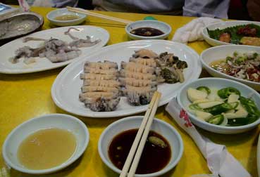 | さっそく、アワビやヒラメなどテーブルに出てきた。 | |||||||||||||||||||