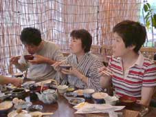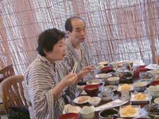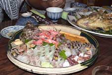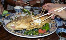 料理旅館だけあって、料理は豪勢だ。タイのフライやら刺身。 |