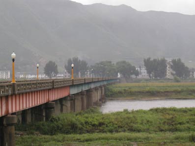 | 豆満江に架かっている橋、向こうに見えるのが「北」。 | ||||||||||||