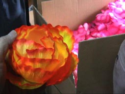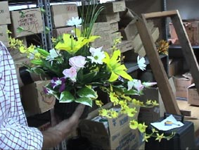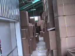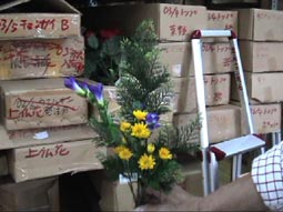 | 造花の製品が段ボールに詰まって、広い倉庫にいっぱいであった。 | |||||||||||