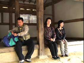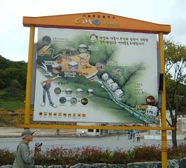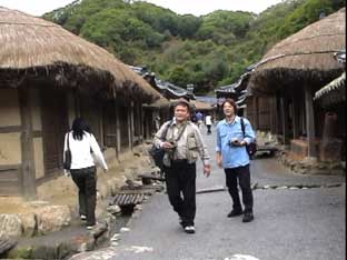 翌日、8:00に朝食。和食か洋食か選択できるが私は洋食にした。朝は韓国風のおかゆだったらいいのにね。でもあとで宋さんに聞いたら、朝は別におかゆを食べるわけではないそうだ。 9:00ホテルを出発して「ソウル総合撮影所」へ向かう。バスにゆられ都心から離れて行く。月曜日は車が多いと聞いていたがホントに多い。韓国は車を買い替える期間が世界一短いそうだ。 景色が田舎へと変わるが、途中マンションラッシュをみた。驚く程の数のマンションが建設されている。これだけのマンションが建設されても入る人たちがまだいるということだ。韓国のマンションはベランダにも窓があり、そこは日本とは違う。 約1時間45分でソウル総合撮影所に到着。バスを降りた時やはり日本より涼しいと感じた。 ソウル総合撮影所は映画JSAで使われた板門店のセットがあり、映画そのままの雰囲気を味わえる。板門店のセットの前で記念撮影。セットの街並を通って古い造りの建物を見る。そのあと韓国映画の紹介やセットの見学をする。最近韓国映画を見る機会が多かった私はとても興味深かった。 ちょうどWonderful Daysの紹介をされていたが、帰ったら観ることにしよう。 |