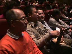 | 横山さんはビデオを回す。 | 撮影場へ向かう途中、こんな垂れ幕広告も | |||||||||||||