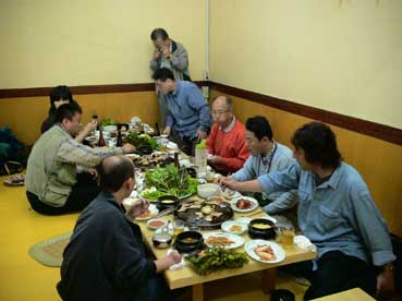 | 19:30、「NANTA(乱打)」を鑑賞するため移動。ナンタ劇場貞洞(チョンドン)A&Cへ行く途中、「徳寿宮(トクスグン)石垣道」を通ったが、そこはアベックで歩くと別れるそうな....。 20:00、NANTA(乱打)鑑賞。公演時間は8時から9時30分。厨房を舞台に、料理を作る過程で厨房にある器具を使ってサムルノリを演奏するという内容。私は普段こういったものを鑑賞する機会がないのでとてもよかった。音と踊りは爆発的なリズムとエネルギー、すばらしいものを見たという感動。そしてそのエネルギーが心の中にまで入り込んでくる感覚。素晴らしいものを観ると感動しますが、それだけではなく自分も頑張らねばと思わせてくれる、本当にすばらしかった。公演終了後、出演者のサインを頂いた人もいる。 21:45ナンタ劇場を出てホテルに向う。バスの中で翌日の説明を聞いて22:00頃ホテルに戻る。 熊谷さん、高村さんの女性二人はエステへ出かけたそうだ。 男性陣はそれぞれ別行動。私たちはコンビニに出かけたが、急きょビールを飲みに行くことにした。コンビニ近くのOBラウンジ。ラウンジといってもビアホールのようなお店だ。韓国の食べ物屋さんはみなそうだが、付け出しで出てくるものは器が空になるとどんどん持ってきてくれる。いいですね。 ホテルに戻ったのは24:00くらいだったかな?。 |