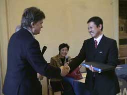 | ここの地方の市長と握手する佐藤代表 | ||||||||||||||