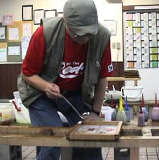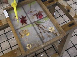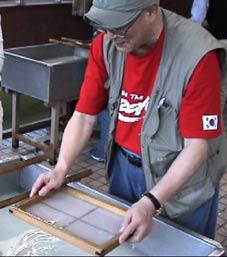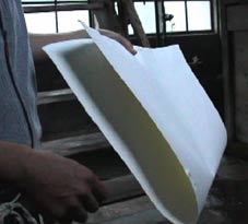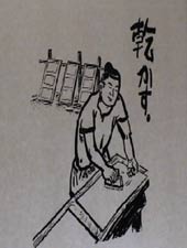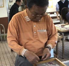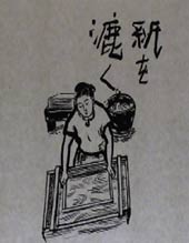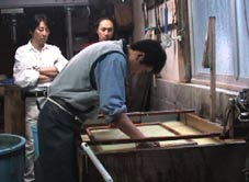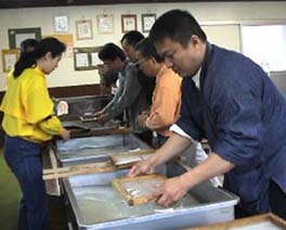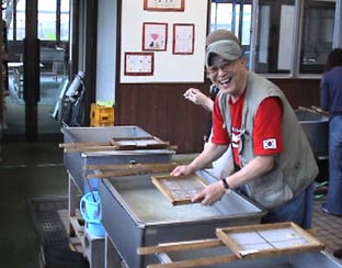 | 石甚製紙所では紙漉の体験をした。 |