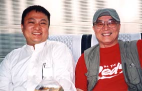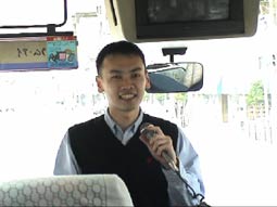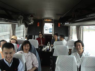 バスの中は快適だ。横山さんと。 |