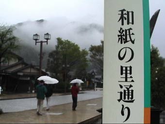 和紙の里通りは風流のあるまちだ。雨がまたいい。 |
