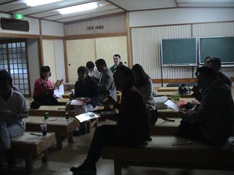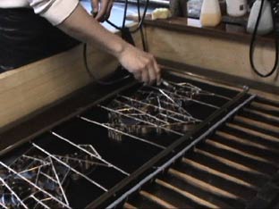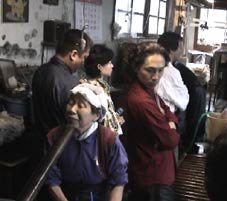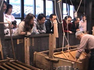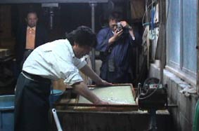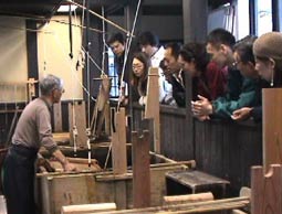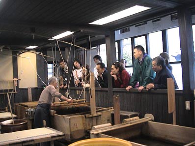 | 2班に分かれて、実際の和紙づくりを見学した。 |