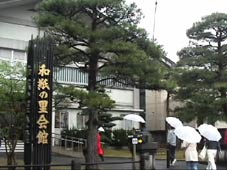 | お昼は弁当だ。公園で食べる予定が、雨のため和紙の里会館で。 |
