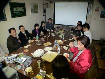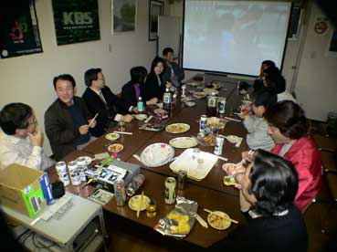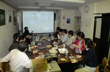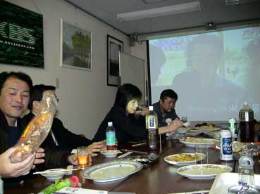 | 映画を見終わって、懇親会を持った。 外部からはNHK-TVの藤田さんも参加した。 |