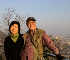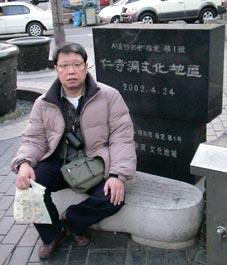 「モッポの涙」記念碑の前で。 |