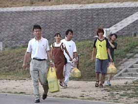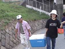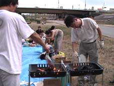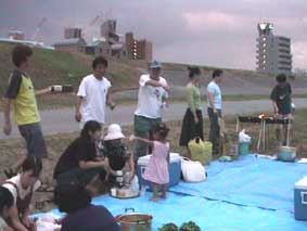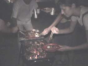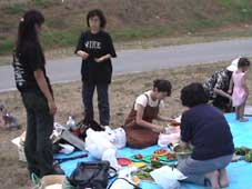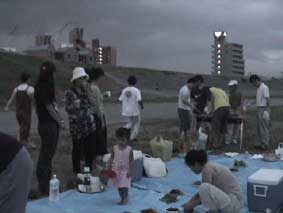 鉄橋の下は真っ暗。手探りしながらの食事だ。