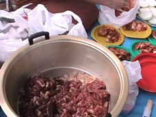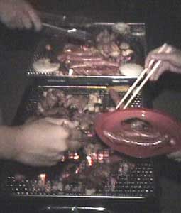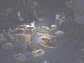 暗い泣けでも、用意したキムチ、サンチュウ、などなどを食べる。