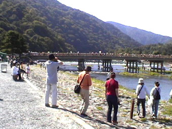 | 嵐山の渡月橋を背景に、3人。 | ||||||||||||||