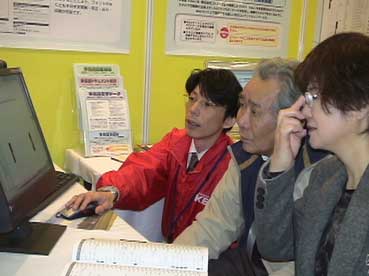 | 旭紙工ではこの二人が熱心にお客をさそう。 |