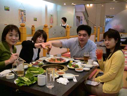 最後はパゴダで、焼肉を。 飯塚さんは、残念ながら、会社に戻らなければならないので、食事会には参加できなかった。 |