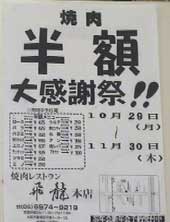 | 店内には半額のチラシがいっぱい張ってある。 11月末までしている。 |