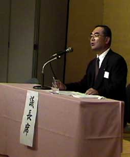 | 平成13年度事業計画案と予算案を述べる、ひでうらさん。 | ||||||||||||||||||||
