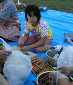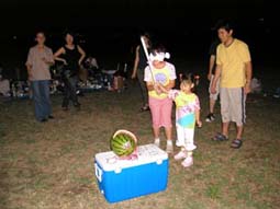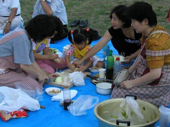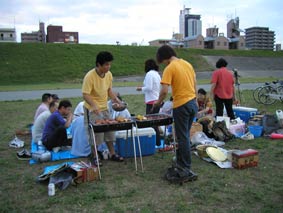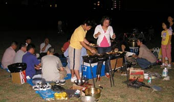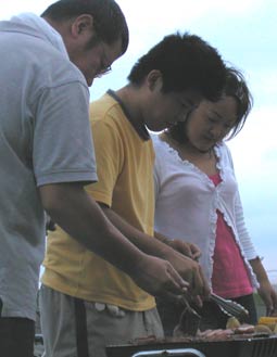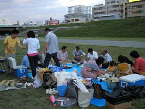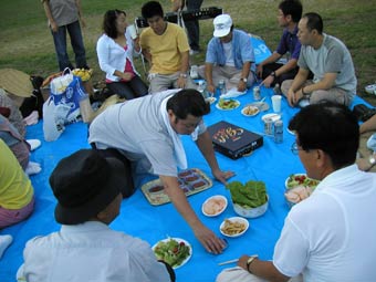 雨は降らず気持ちのいい風が吹いて、たのしい時間を過ごせた。 お客としては和泉さん、チャンさん、新井さん、その子、以前社員だった李さんとその子、稲木さんのフィアンセ、田庭さんの友人3人、元社員の益田さん、全員21人が参加。今回の幹事は高原さんと山蔵さんの2人。緻密な計画を立て準備をしたので、スムーズに会は進み、無事終わることができた。 |