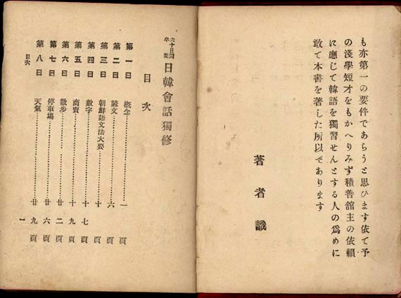 緒言には「日本人は早く韓国人を指導して、文明の開花に導かねばならない。これ、日本人の天職である。その方法のひとつとして、彼らの国語を知って、彼らの国情を知ること。」のようなことが書かれていました。