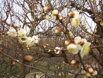 | 冬至(とうじ)と八重野梅(やえやばい)どちらもピンクかかった白い花、私には区別ができない。 | ||||||||||||||