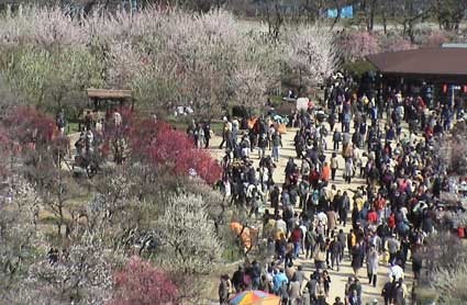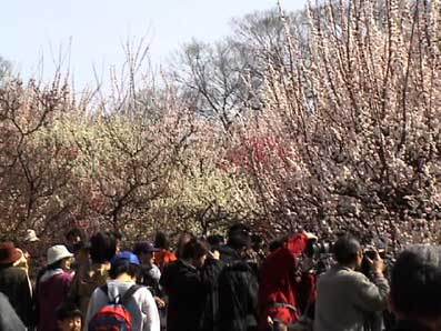 | 人混みのバックには満開の梅の花が何ともいえない。 | |||||||||||||||||||