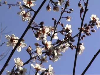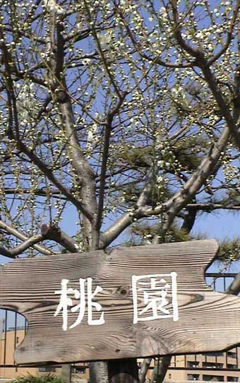 公園内の桃園には桃の花が咲いている。もうすぐ満開になる。赤い花や白いのがきれいだ。