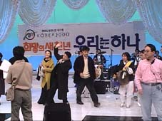 KBS(韓国の放送局)がノレチャランを大阪で2000年記念特別番組を兼ねて進行していた。韓国と衛生中継をつなぐなど、これまだ大変。