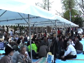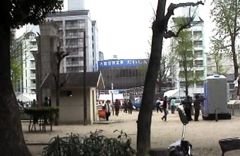 | 常設トイレ(左)だけでは足りない、と臨時トイレの設置。 | ||||||||||||||||||||||||||