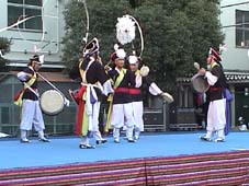 風舞楽(プンムアク)は韓国らしい情緒あふれる風物(プンムル)・舞踊・音楽を披露してくれるグループです。メンバーは幼い頃から韓国の伝統芸術に慣れ親しんできましたが、韓国民俗村・国立国楽院・ソウル市立舞踊団での活動を通じて風物・舞踊・音楽の技量をさらに磨き、1991年11月11日に正式に風舞楽を発足させました。風舞楽は86・90年のアジア大会をはじめ、88年のオリンピック文化祝典、フランス世界打楽器フェスティバル、ヨーロッパ10ヶ国・アジア・南米など、国内外で500回以上の公演を行い、韓国の優れた伝統芸術を世界中に紹介してきました。また、国内の大会においては、83・84年全州大私習ノリ農楽部門主席、85年全国農楽競演大会で大統領賞、93年ソウル国楽大競演大会風物部門で金賞に輝くなど、国内第一級のグループとして高い評価を受けています。風舞楽は生きた芸術を目指しています。それは、単に伝統芸術を守り続けるだけにとどまるのではなく、生命力あふれ人の心を打つようなリズムを絶ゆみなく追求していくことなのです。第12回ワンコリアフェスティバルに続いての参加です。