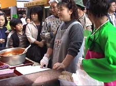 徳山物産。チヂミを買に人が並んでいる。