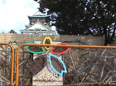 2008年大阪オリンピック宣伝のなにか造り掛けのものがあった。多分菊の花が咲く時に飾りをするのだろう。