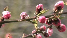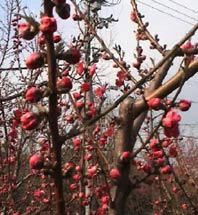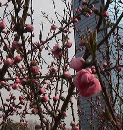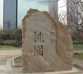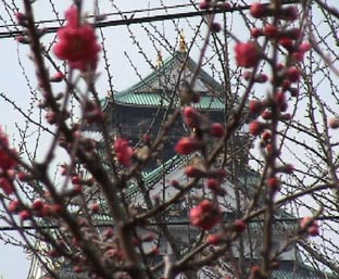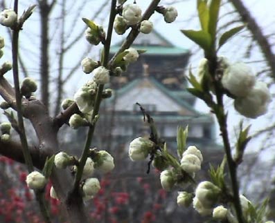 | 桃の花の向こうの方には大阪城が。 | ||||||||||||||||||
