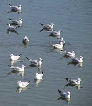 | 渡り鳥たちが堀で遊んでいる。 | ||||||||||||