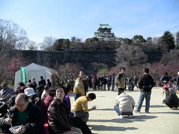 | 大阪城の周りに人がたくさん来ている。 | ![]() |