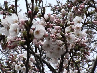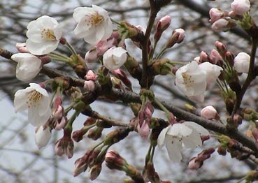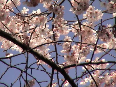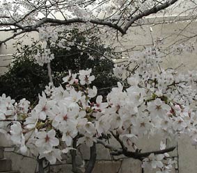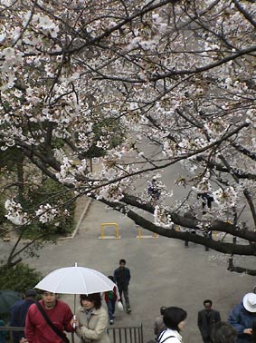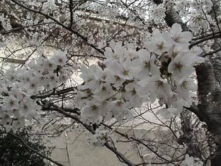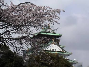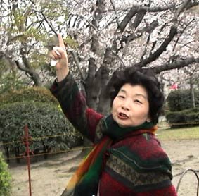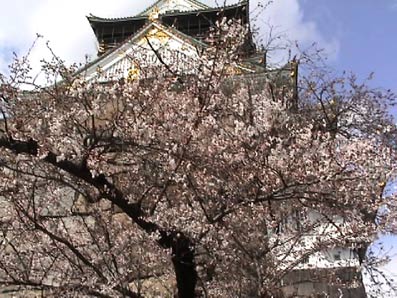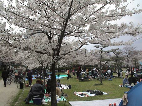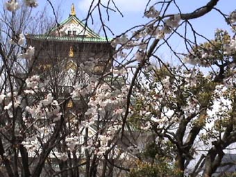 大阪城公園には、3月24日早くも桜が咲いた。花見の人たちがさくらの下で、