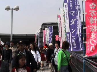 | モノレールの万博記念公園駅を降りる人々は多い。 | ||||||||||||