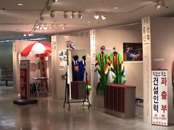 ガイドブック。ぜったいこれ買うべし。 この展示を詳しく書かれている。 アボジとオモニは、おなじ安東大学で民俗学を専攻した先輩と後輩。べつべつの人生を歩んできたふたりを、運命はソウルでむすびつける。ふたりが結婚にゴールインしたのは1988年。アボジが30歳、オモニが27歳の時だった。それぞれ仕事を持ちながら、愛し合うふたり。たちまち子供をさずがり、結婚の翌年にはハルモニを呼び寄せて同居をはじめた。長男トンファにつづいて、1991年には長女ウィジョンも誕生。李さん一家は5人家族になった。いつどんなことがおこるかわからない現代社会。ハルモニ、アボジ、オモニ、そしてふたりの子供たちは、楽しいことも、苦しいこともわかちあって、ともにあゆんでゆきたいとねがう、そんな理想の家族なのだ。(この本より) |