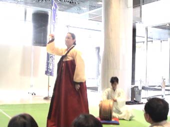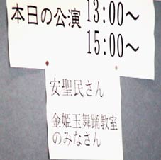 | 今日の出し物は安聖民さんの「パンソリ」と金姫玉舞踊教室の踊りだ。 | ||||||||||||||