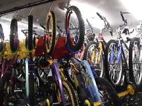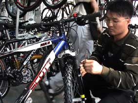 | トンクワン商事という自転車屋。 アンヘファンさんがライトを付けてくれた。 |