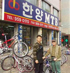 | 右の人がハニャンMTBの社長、趙炳祿さん。 この店を選んだのはインターネットで見つけた店。メールの返事がすぐあったので決めた。 |