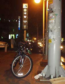 | ハンガンに近づいたところに、自転車屋があった。 ここでライトをつけてもらった。 |