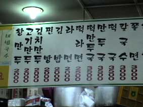 | メニューをみるとほとんどが2000ウオンだ。 | |||||||||||||