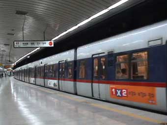 | 地下鉄にも乗った。 なんと、車内に液晶テレビが設置されている。ニュースなど情報を流していた。もちろん、コマーシャルも。このCMで運営されているのだろう。 うっかり、それを写真に撮らなかった。 |