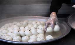 おお、 おいしいそうだ。 ワンマンドウ 小型豚まんだ。 |