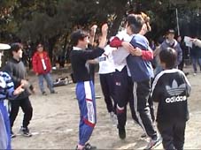| 同点になったので、じゃんけんで勝ちを決める。勝った!(チョキだ) | 勝った!勝った!。大喜び。 | |||||||||||||||||||||||||||||||