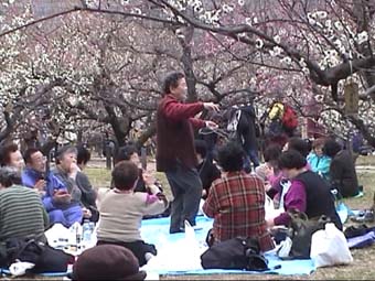 梅の花の下で弁当を広げたり、 あるいは踊ったり。 |
