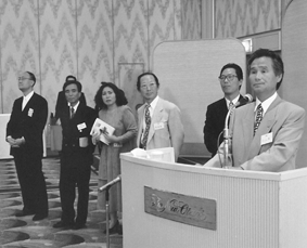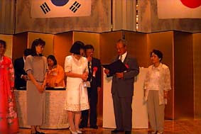 夕方6時からはいよいよフィナーレの校友会主催による祝賀会が9期生朴正準氏の司会により開かれ、来賓・教職員・校友生約450名が、ある者は遠く岩手や東京から一堂に会して旧交を暖め合った。